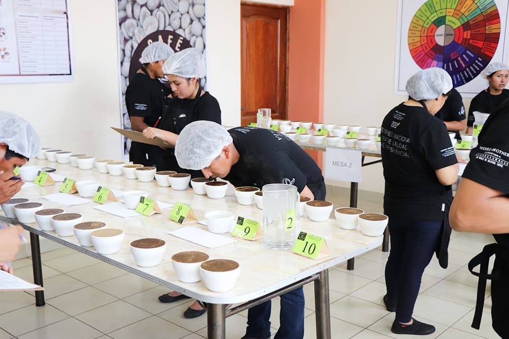 ASO RUBEN では農園主のポテンシャルを上げ、ボリビア産コーヒーの更なる発展に向け、国際大会の審査員も務めるスタッフによる厳正なカッピングにより豆の評価をつけています。それにより、次の収穫に向けて農園主達のモチベーションも上がります。カッピングする豆は、まず農園主からサンプル提出された豆をカッピングします。その中から高品質と評価した物だけを、再度スタッフが農園まで出向き、保管している中からランダムに豆を選んで持ち帰りカッピングします。その中で80点以上の豆だけを集め農園名を伏せて3度目のカッピングをします。最終的に方式カップ評価82点以上に残った豆だけを標高4040mにある、低温低湿な保管庫へ運びます。そこでは、熟練した技で一粒一粒ハンドピッキングされ、更に質の良い豆だけを選び日本に運びます。